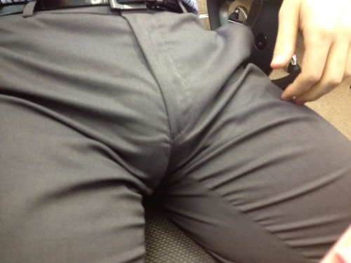 Took my car to a new shop yesterday to get an idea on some work I don't have time to do myself. Shop manager is a STUD. Hot guy, about my size, around the same age - dark hair, brown eyes, good looking, a jawline trimmed close beard and goatee, good build, about same size as mine - And when we were standing there going over what he had written on his clipboard, my eyes were glued below the clipboard to the front of his jeans. Don't even think I was listening to what he was saying. lol Definitely a bulge, not because his jeans were tight, but because I am pretty sure he wasn't wearing underwear. DAMN! Had to stop because I was starting to get hard right there next to him!